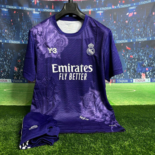 لباس چهارم رئال مادرید 2024 هواداری با شورت بنفش Y3