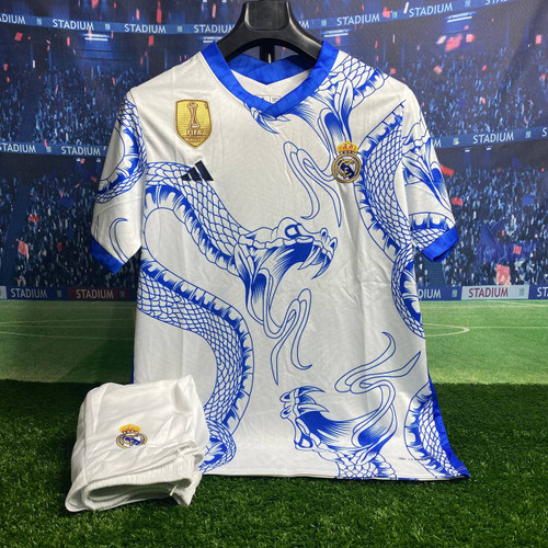 لباس دراگون رئال مادرید 2024 هواداری با شورت سفید آبی