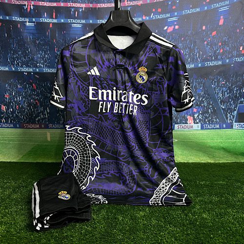 لباس کانسپت رئال مادرید 2025 هواداری با شورت بنفش و مشکی