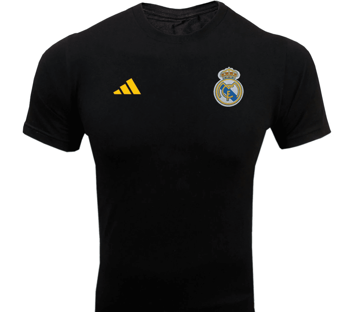 لباس کانسپت رئال مادرید 2024 مشکی نوار زرد هواداری با شورت