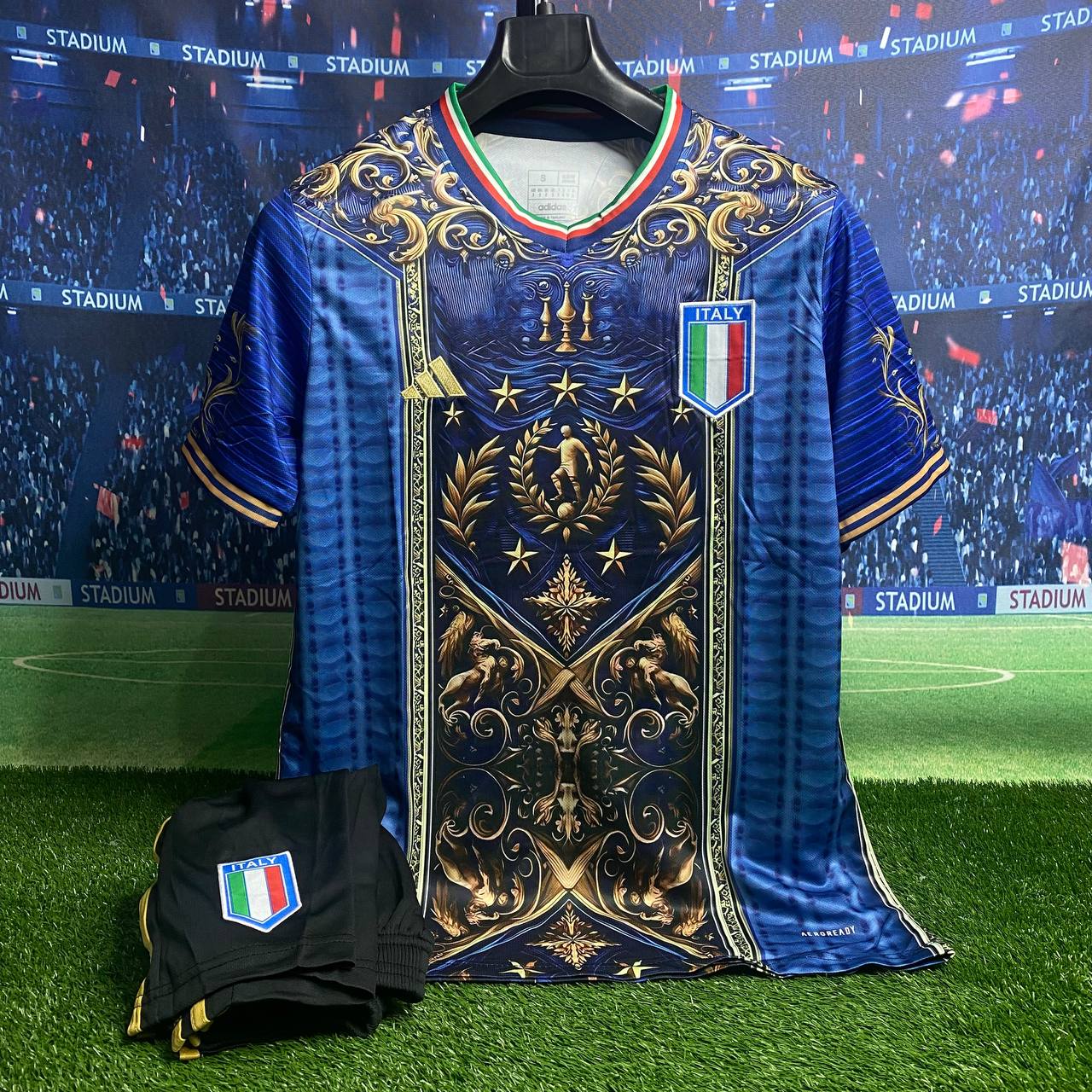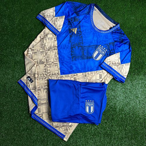 لباس کانسپت پادشاهی ایتالیا 2025 هواداری با شورت آبی طلایی
