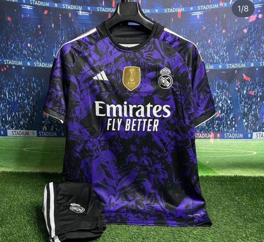 لباس کانسپت رئال مادرید 2025 هواداری با شورت بنفش و مشکی