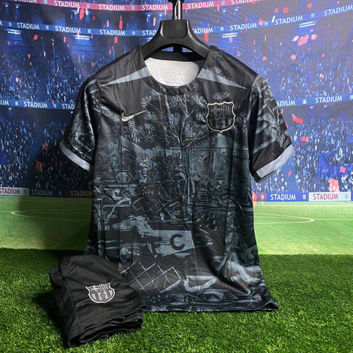 کانسپت جنگلی بارسلونا 2025 هواداری با شورت مشکی