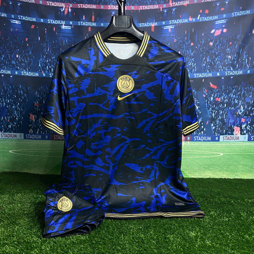 لباس کانسپت هواداری قهرمانی پاریسن ژرمن 2025 آبی و مشکی